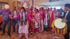 समारोह में पारंपरिक वाद्ययंत्रों की गूंज के बीच रंगों की बौछार और फूलों की खुशबू ने पूरे टाउन हाल को होली के उल्लास से सराबोर कर दिया।