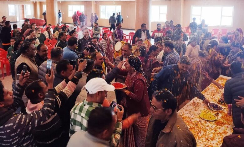 मसूरी। नगर पालिका परिषद द्वारा टाउन हाल में आयोजित होली मिलन समारोह में शहरवासी रंगों और फूलों की होली के साथ उत्साहपूर्वक झूम उठे। कार्यक्रम में पालिकाध्यक्ष मीरा सकलानी एवं अधिशासी अधिकारी गौरव भसीन ने सभी नागरिकों को होली की शुभकामनाएं दीं और पारंपरिक वाद्ययंत्रों की धुन पर जमकर नृत्य किया। इस दौरान एक-दूसरे को गुलाल लगाकर तथा फूलों की होली खेलकर आपसी सौहार्द का संदेश दिया गया।