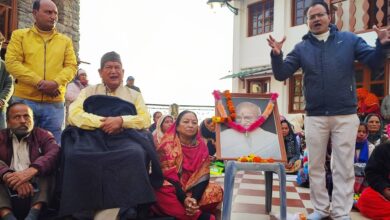 पूर्व मुख्यमंत्री हरीश रावत उतरे पटरी वालों के समर्थन में मसूरी शहीद स्थल में दिया धरना।